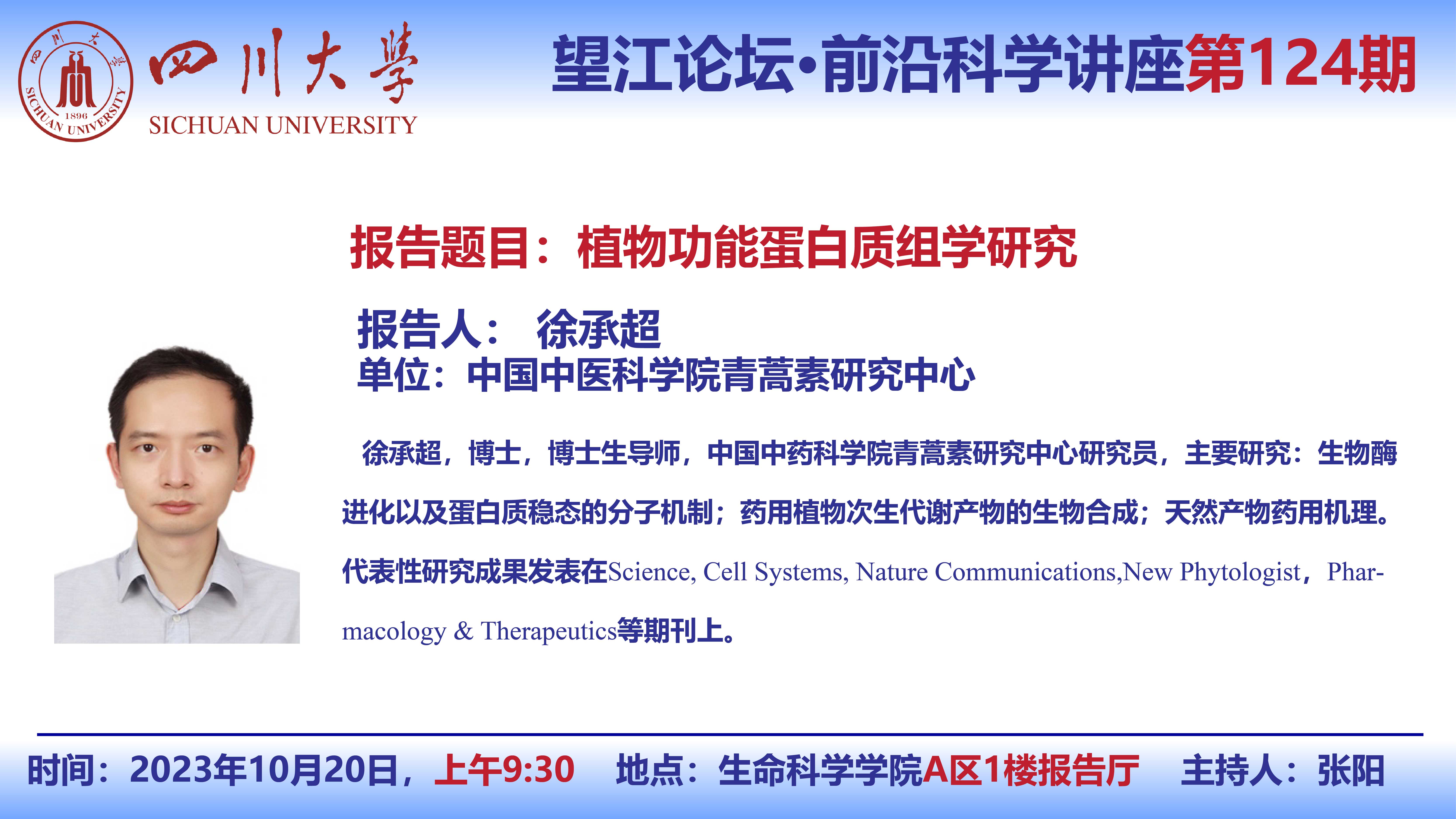 望江论坛-前沿科学讲座(第124期):徐承超研究员10月20日学术报告