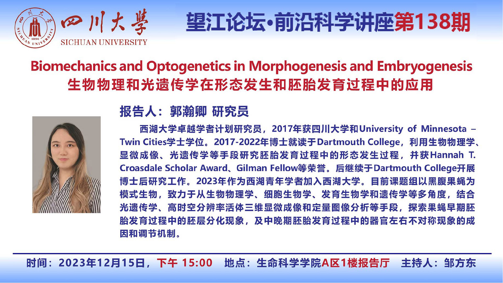 望江论坛-前沿科学讲座第(138期):郭瀚卿研究员12月15日学术讲座