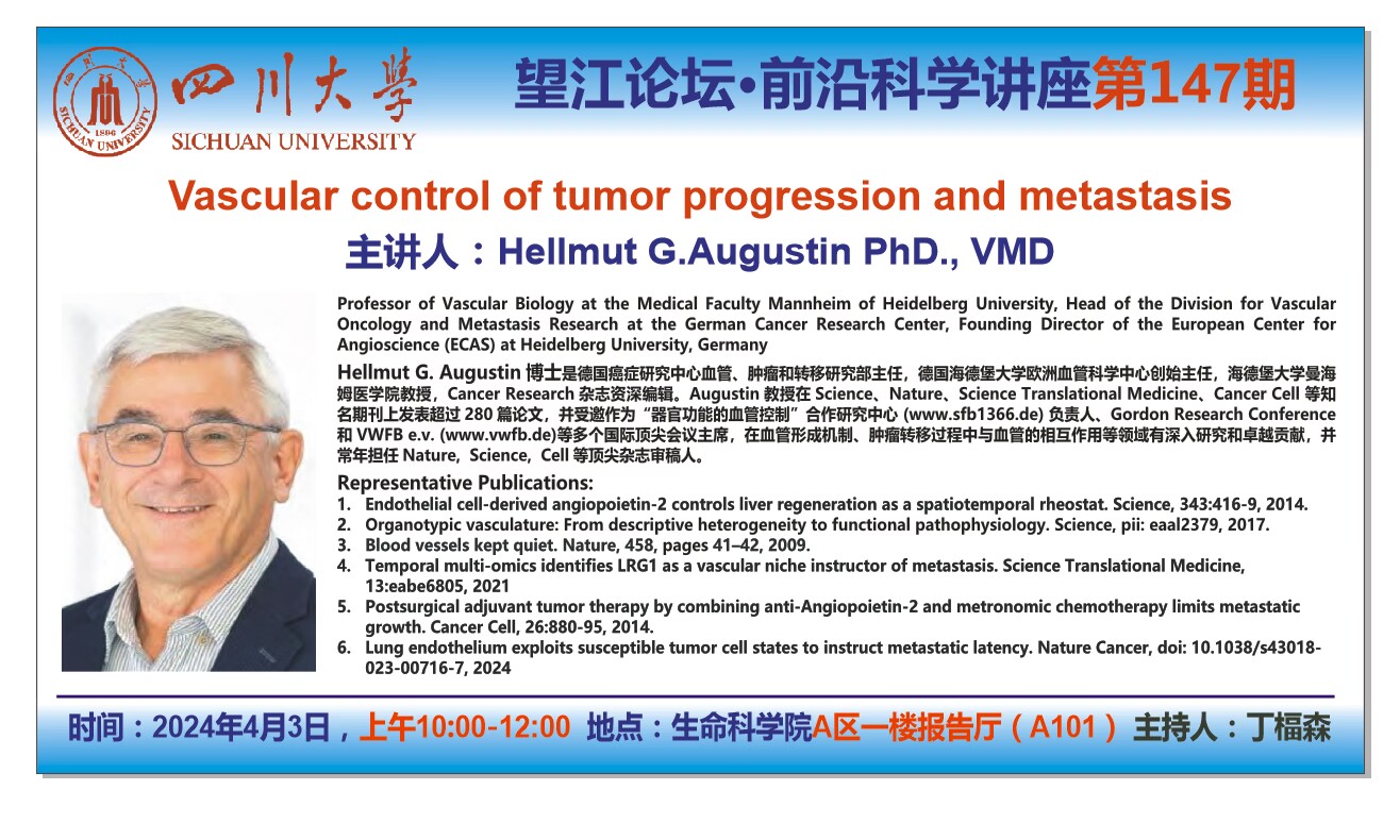 望江论坛-前沿科学讲座(第147期):Hellmut G.Augustin教授4月3日学术讲座