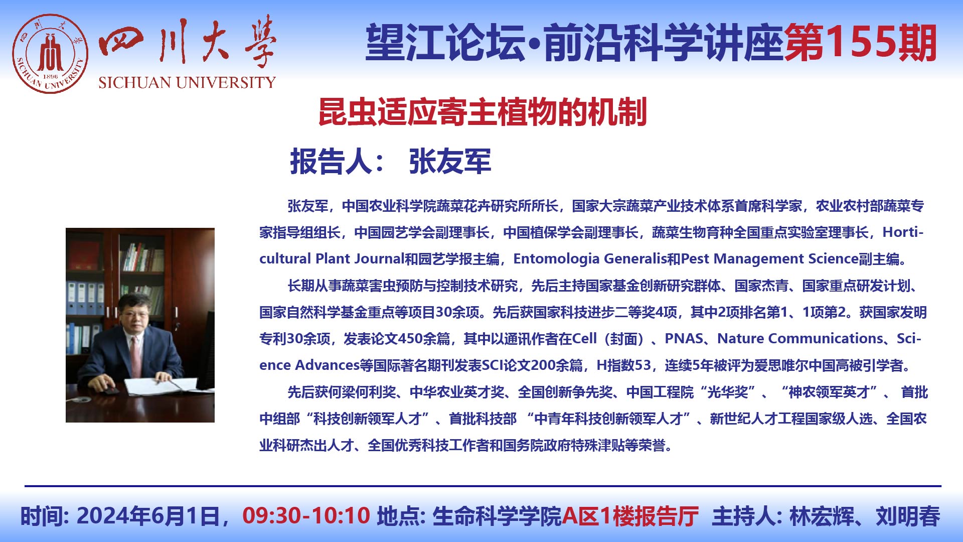 望江论坛-前沿科学讲座(第155期):张友军研究员6月1日学术讲座