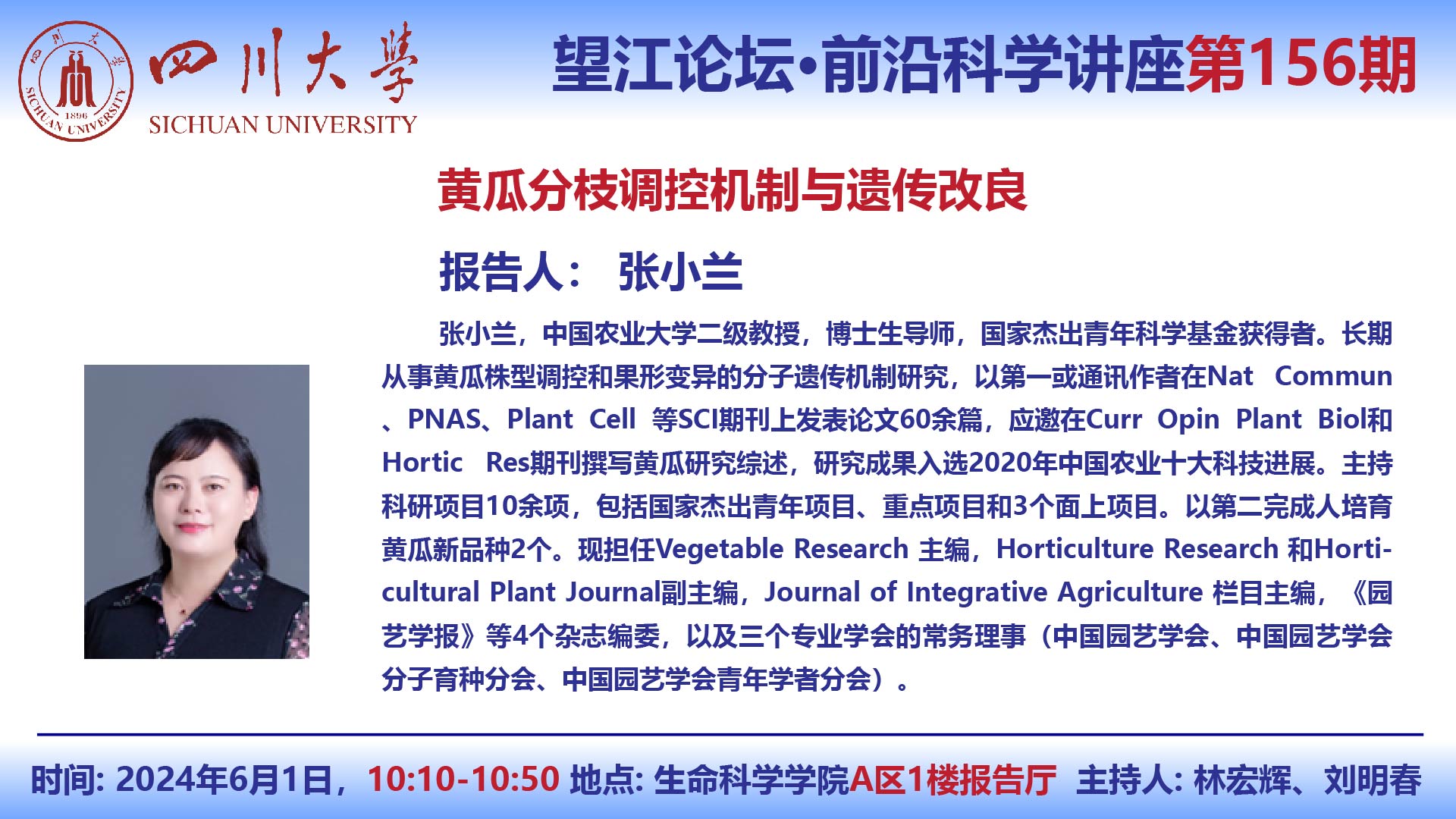 望江论坛-前沿科学讲座(第156期):张小兰教授6月1日学术讲座