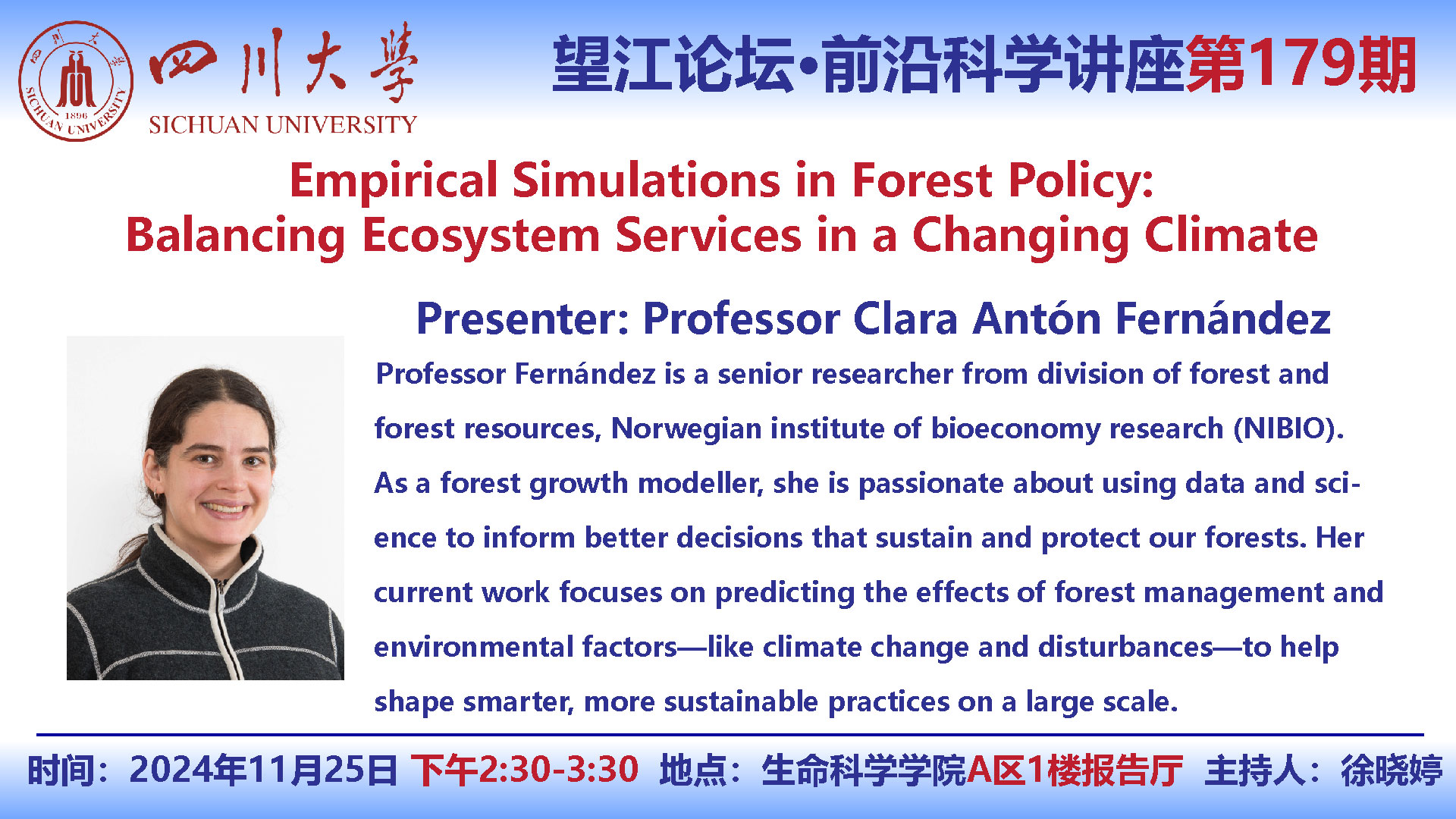 望江论坛-前沿科学讲座(第179期):Clara Anton Fernandez教授11月25日学术讲座