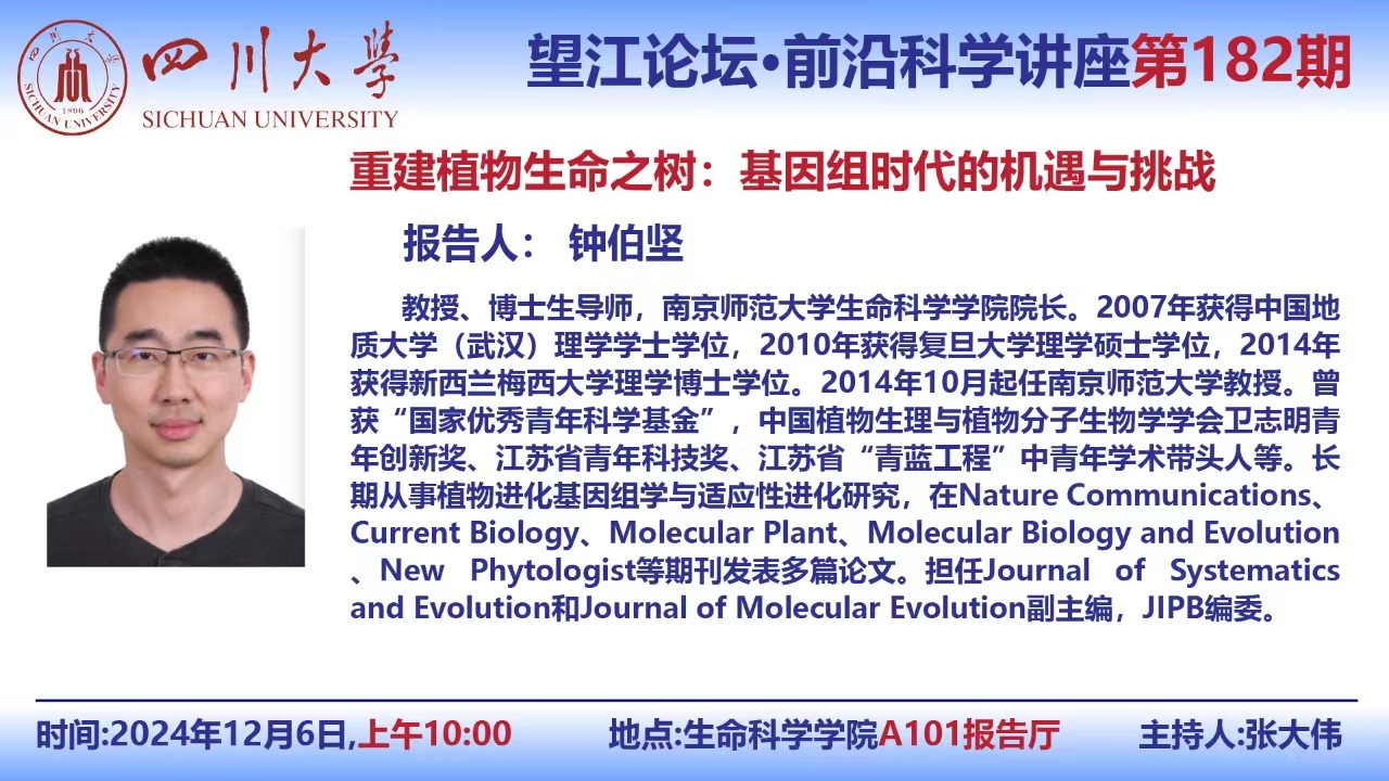 望江论坛-前沿科学讲座(第182期):钟伯坚教授12月6日学术讲座