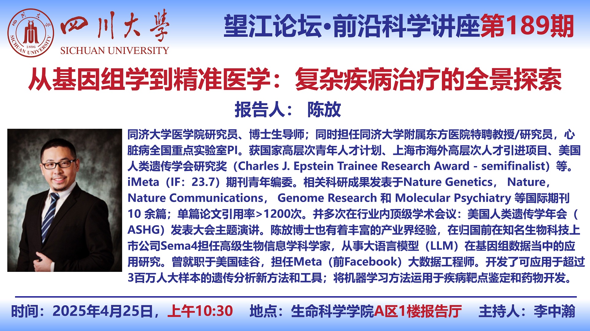 望江论坛-前沿科学讲座(第189期):陈放研究员4月25日学术讲座