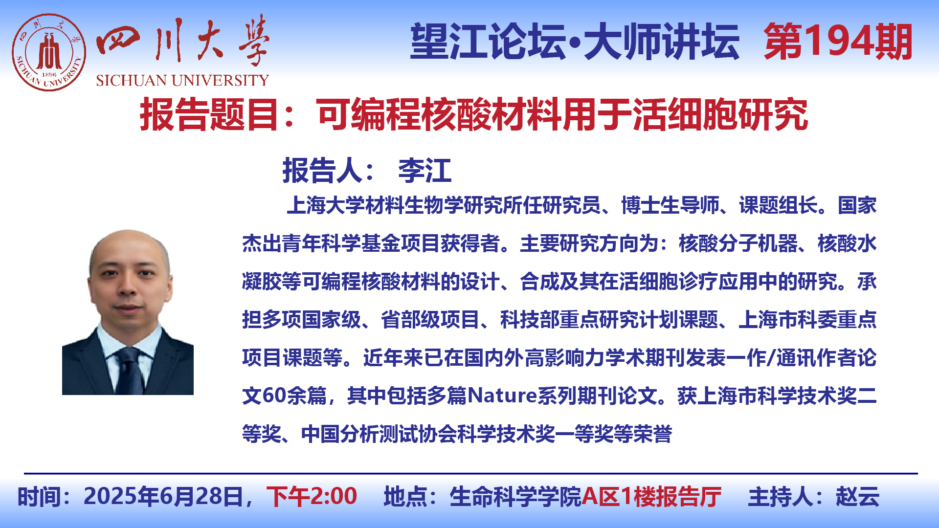 望江论坛-前沿科学讲座(第195期):李江研究员6月28日学术讲座