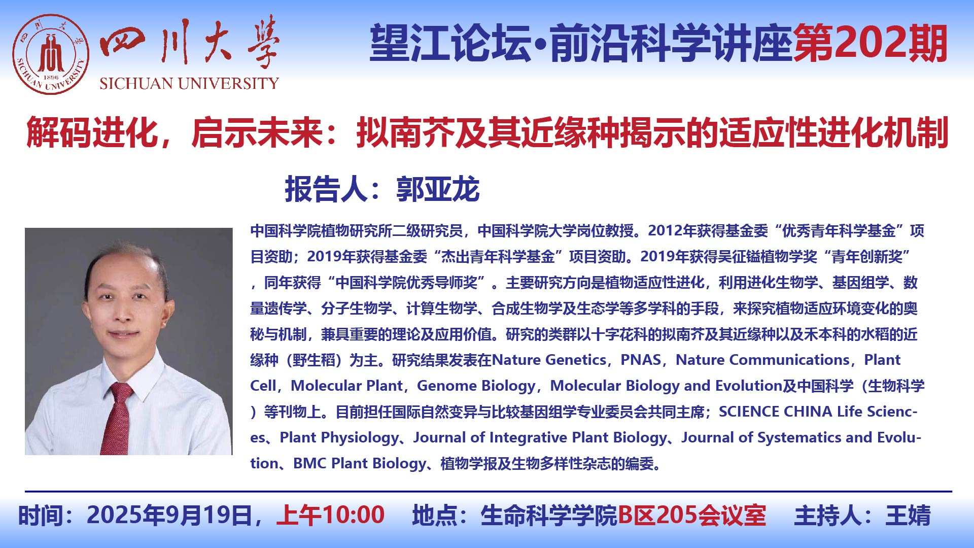 望江论坛-前沿科学讲座(第202期):郭亚龙研究员9月19日学术讲座