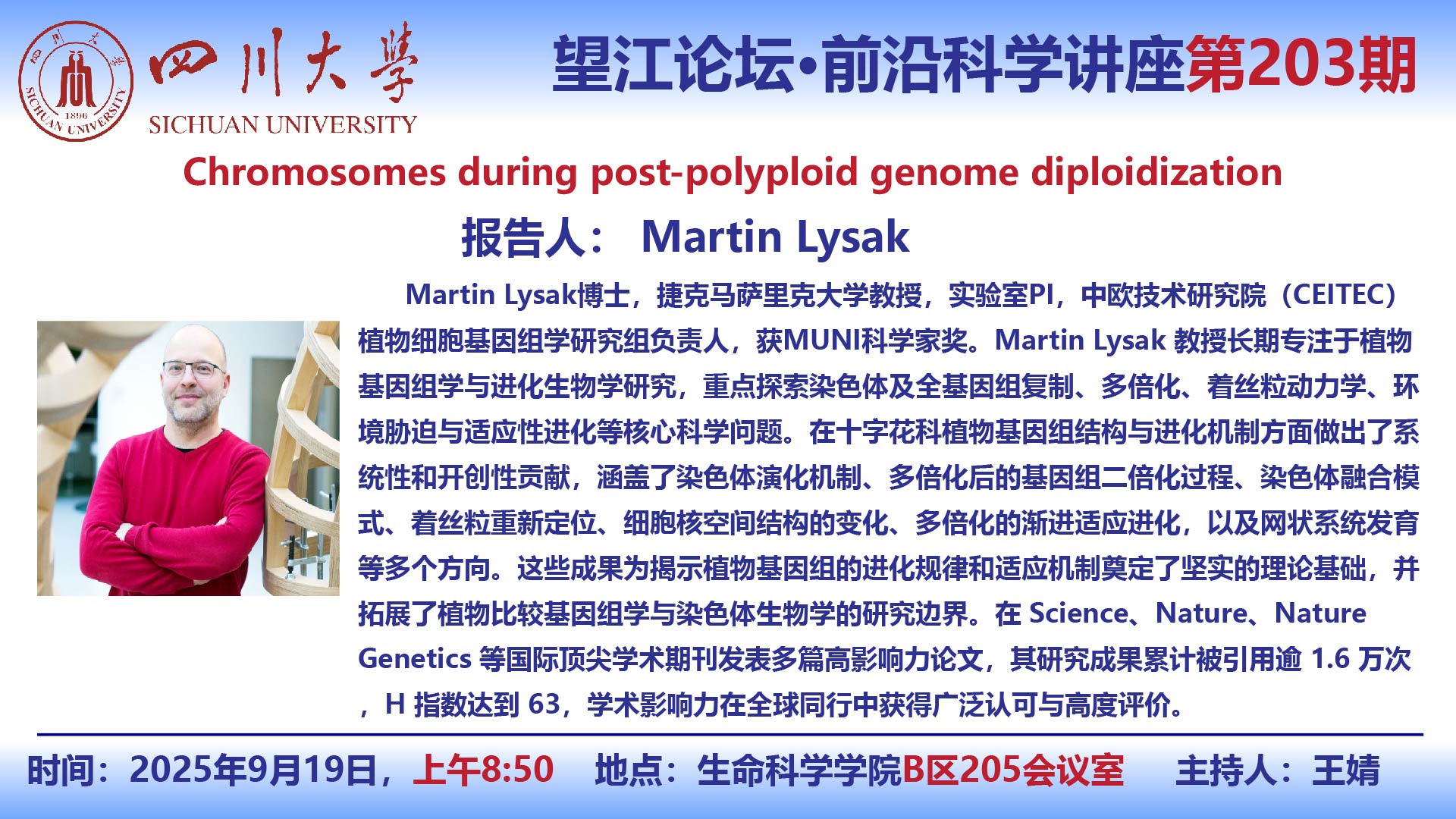 望江论坛-前沿科学讲座(第203期):Martin Lysak教授9月19日学术讲座