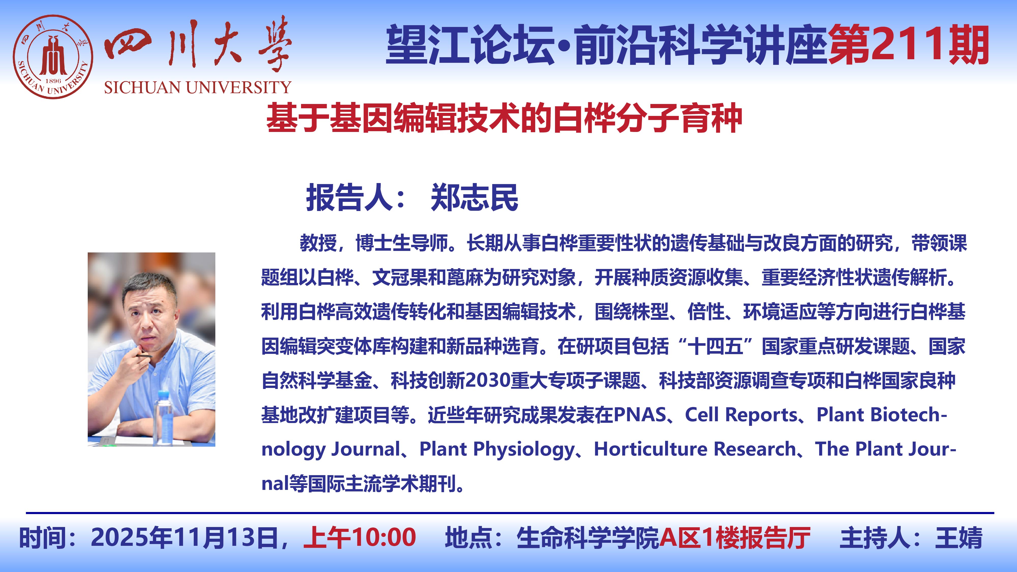 望江论坛-前沿科学讲座(第211期):郑志民教授11月13日学术讲座