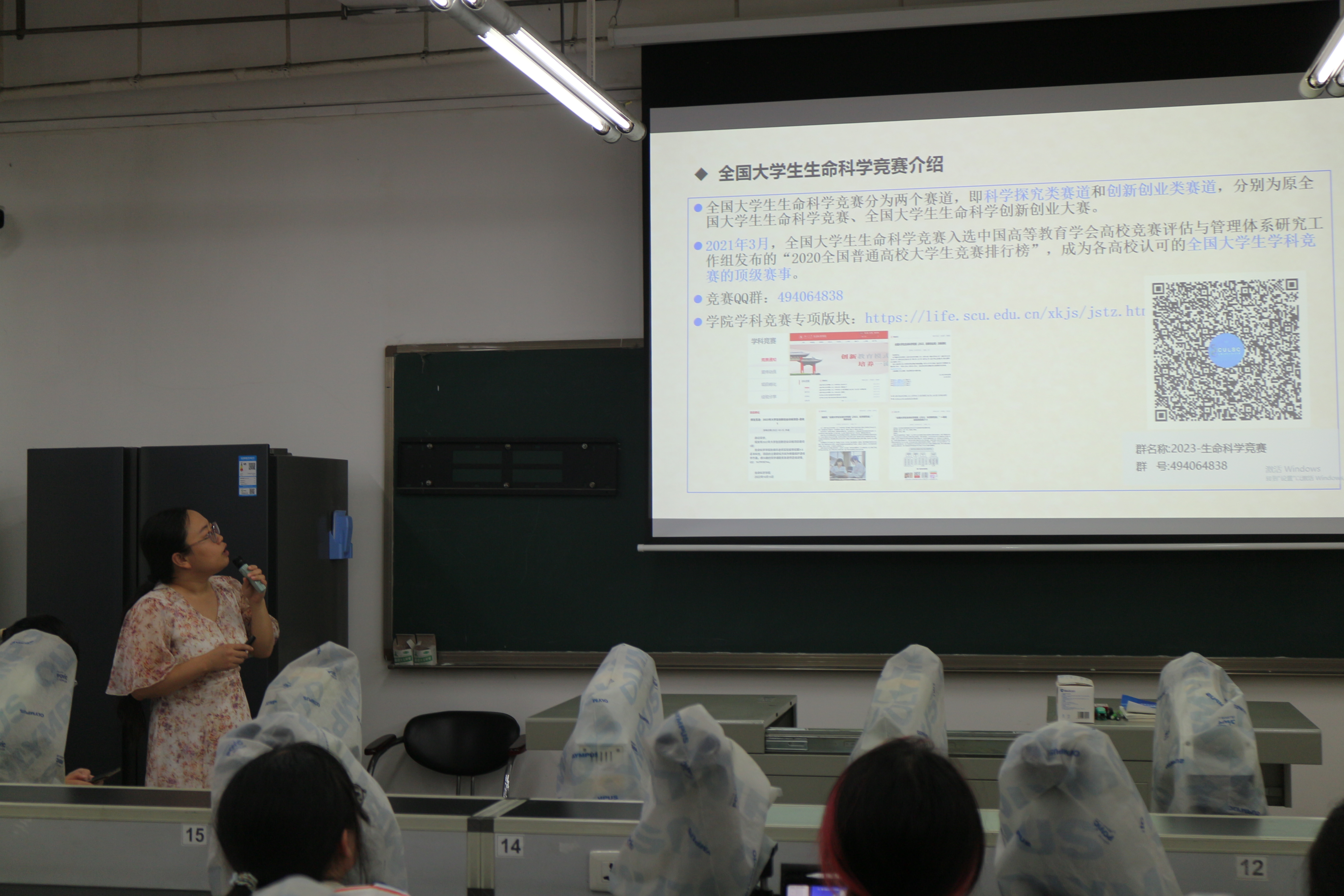 活动由阎臻老师主持,她首先为同学们介绍了实验中心概况和出席宣讲会的各位老师。接着,熊莉老师详细讲解了生命科学竞赛中科学探究赛道的赛事规则和参赛注意事项,使同学们对该赛道的内涵有了全面的认识。随后,郑冬超老师对创新创业赛道的赛事进行了精彩讲解,为同学们揭开了该赛道的神秘面纱。