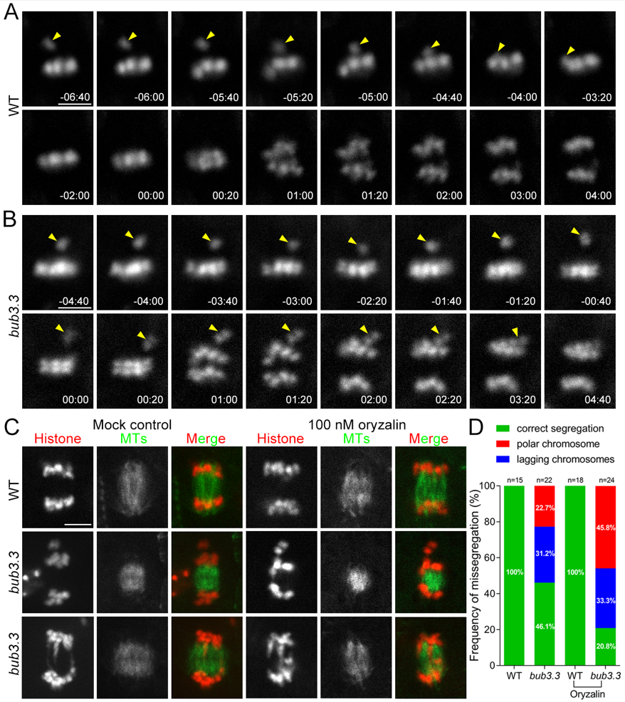 图2. BUB3.3缺失导致染色体错误分离。