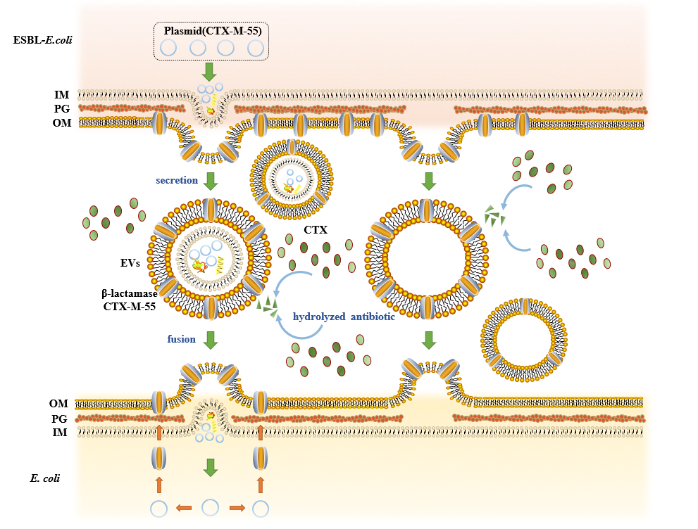 参考文献:ESBL- Escherichia coli extracellular vesicles mediate bacterial resistance to β-lactam and mediate horizontal transfer of blaCTX-M-55. Int J Antimicrob Agents. 2024 Mar 16;63(5):107145. doi: 10.1016/j.ijantimicag.2024.107145.