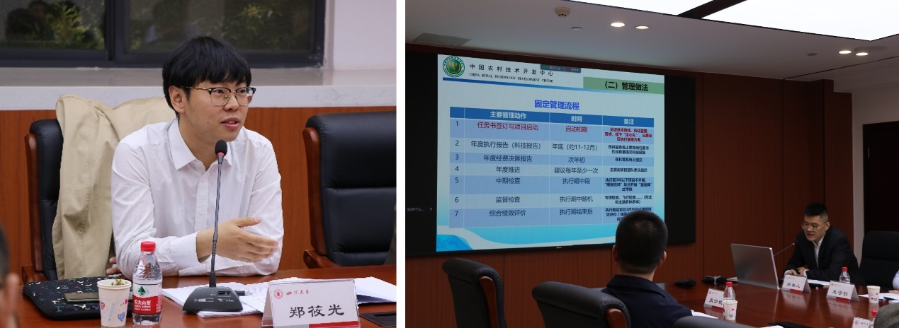 中国农村技术开发中心项目专员郑筱光副研究员、张沙秋副教授,专项跟踪专家和咨询专家,项目牵头单位领导四川老员工命科学公司党委书记林宏辉教授、副经理毛康珊教授,tyc5997太阳集团科学技术发展研究院重大项目与基地管理部陈显春副部长、项目负责人张阳研究员、项目组成员海南大学王守创教授等30余人,以线上线下相结合的方式参加此次会议。