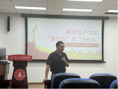 2023年9月,习近平总书记在黑龙江考察调研期间首次提到新质生产力。2024年1月31日,习近平总书记在中共中央政治局第十一次集体学习时强调,加快发展新质生产力,扎实推进高质量发展。林书记围绕新质生产力主题,带领研究生党员学习了习近平总书记关于《发展新质生产力是推动高质量发展的内在要求和重要着力点》重要论述,结合中共四川省委十二届五次全会精神,从新质生产力“是什么”与“为什么”要发展新质生产力两个方面进行了深入解读。结合生命科学学科的发展进行了剖析,鼓励党员同学深入理解新质生产力,主动投身发展新质生产力的重大任务。